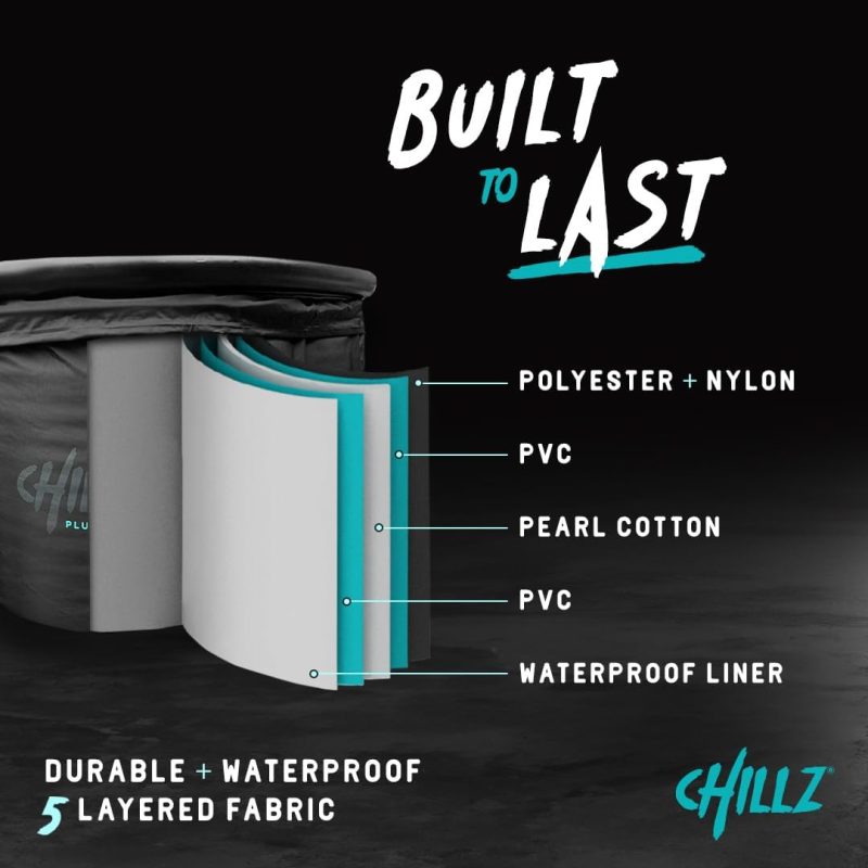 The CHILLZ Plunge Pod XL is an impressive upgrade with 5 layers of thermal insulation with enhanced size and capacity, allowing for a more immersive cold therapy experience.